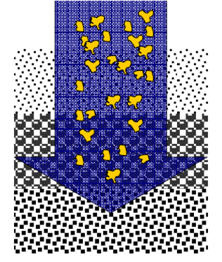普通過(guò)濾器,粒徑小的濾料在上層,愈往下層粒徑愈大。水流自上而下地在濾層孔隙間進(jìn)行過(guò)程中,雜質(zhì)首先接觸到截污能力最強(qiáng)的上層細(xì)濾料,大顆粒懸浮物最先被除去,剩下一些小顆粒懸浮物被輸送到下一層。由于下層濾料比上一層要粗,其截留能力不足上一層,越往下層,這一現(xiàn)象愈加明顯。這種過(guò)濾,事實(shí)上會(huì)造成污泥絕大部分堆積在上層,導(dǎo)致局部阻力增長(zhǎng)過(guò)快,總的水頭損失大。