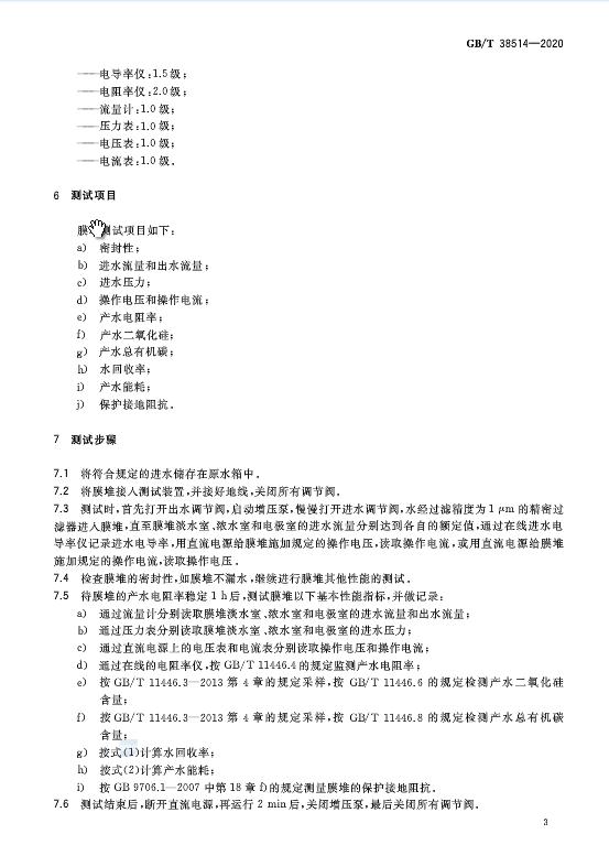 《電去離子膜堆測試方法》于2021年2月1日起施行